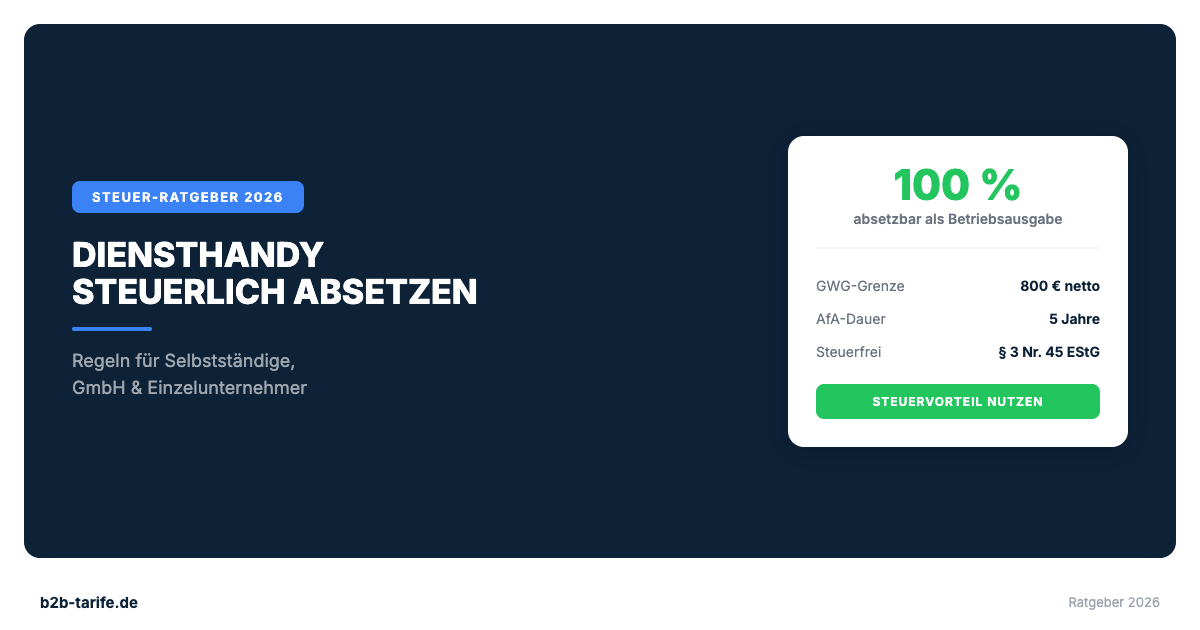Diensthandy steuerlich absetzen: GWG-Grenze, AfA-Regeln, Vorsteuerabzug und Tipps für Selbstständige und Arbeitgeber.