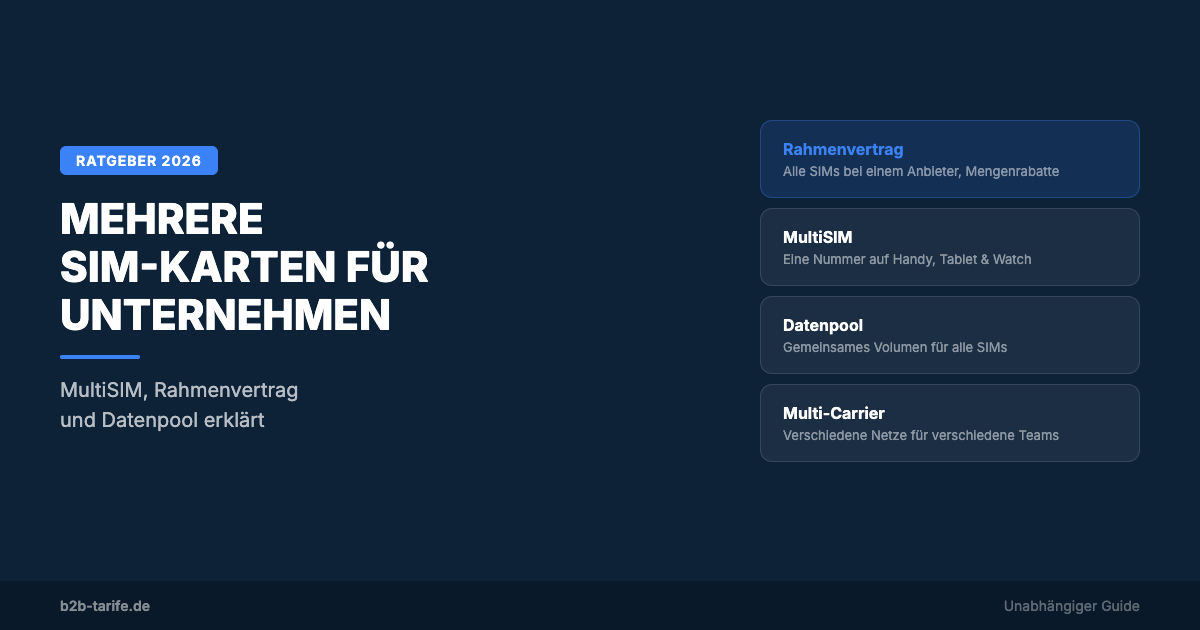 Mehrere SIM-Karten im Unternehmen effizient verwalten: Rahmenvertrag, MultiSIM oder separate Verträge? Dieser Guide zeigt die drei Strategien mit Preisen und Empfehlungen.