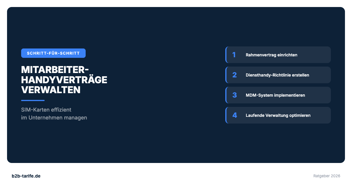 Mitarbeiter-Handyverträge effizient verwalten: Rahmenvertrag, Diensthandy-Richtlinie und MDM-System in 4 Schritten.