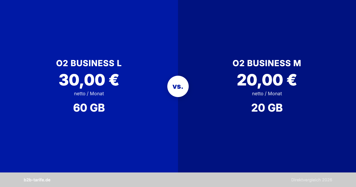 O2 Business L (60 GB, 30 €) vs M (20 GB, 20 €): Upgrade-Rechnung und Empfehlung.