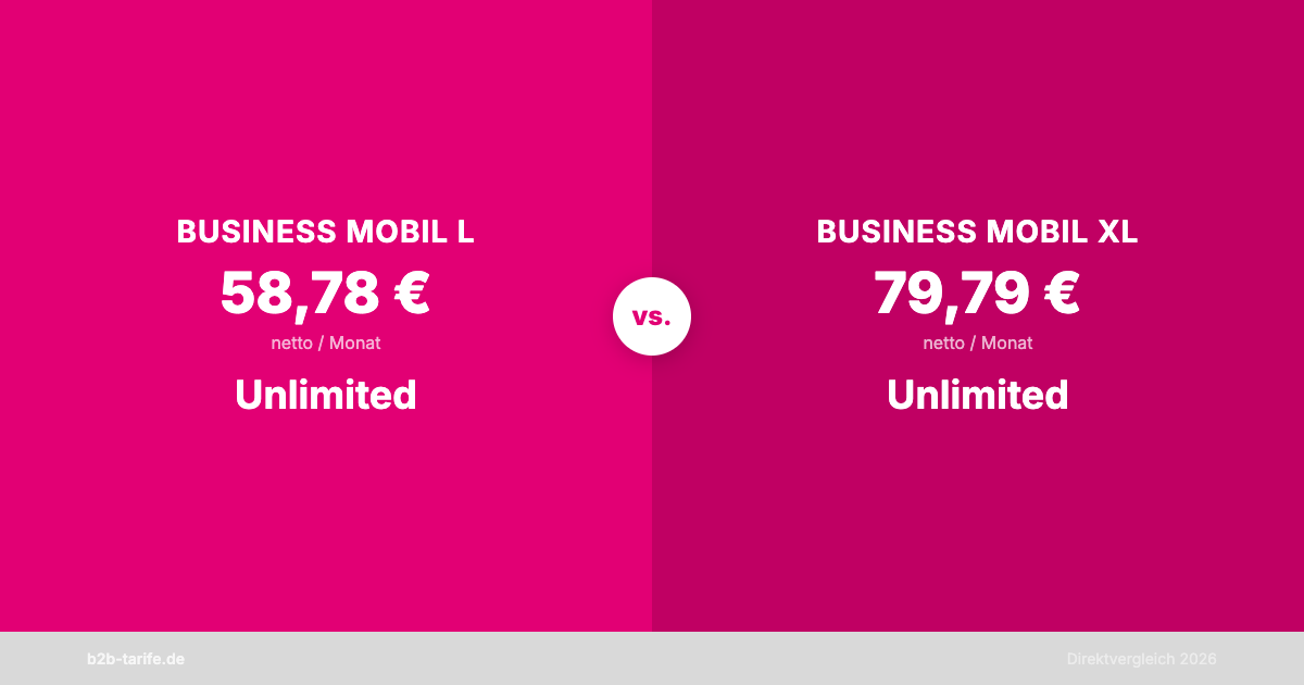 Einzeltests beider Tarife: Telekom Business Mobil L im Test und Telekom Business Mobil XL im Test. Den vollständigen Tarif-Überblick finden Sie im Telekom Business Ratgeber.