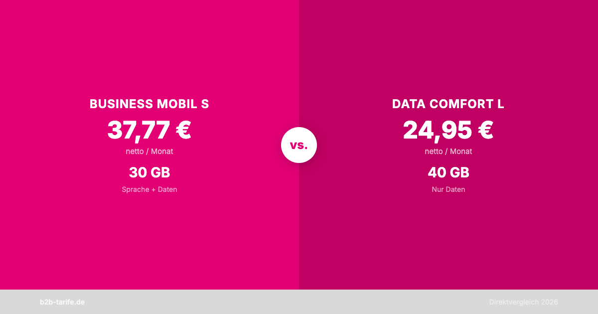 Telekom Business Mobil S (37,77 €) vs Data Comfort L (24,95 €): Sprachtarif gegen Datentarif.