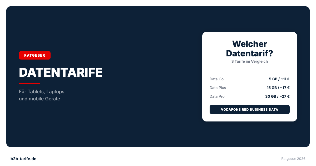 Vodafone Datentarife für Geschäftskunden: Red Business Data Go bis Pro. Vergleich mit OneNumber und Telekom Data Comfort.